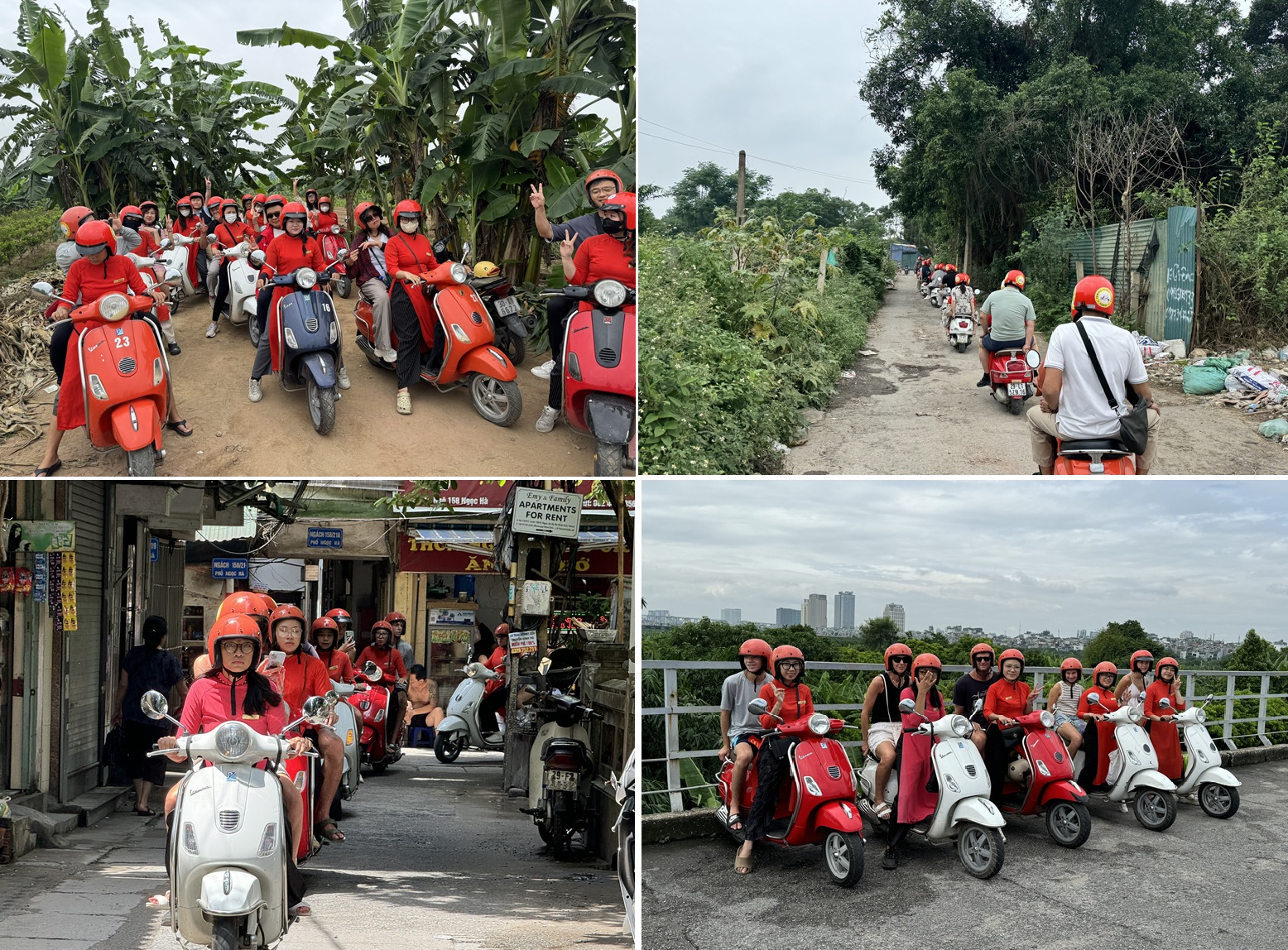 1 : Female Vespa Tours will drive through the of the spectacular Long Bien Bridge that Spans the Red river, we will take a ride on our Vespa alongside of the red river bank to the countryside area, you will See vast of the rice paddies with green color, see the rural villages hidden at the side of the rice farm